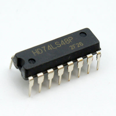 El 'LS48' traduce 4 líneas de entrada de datos BCD a un código numérico de 7 segmentos y provee 7 salidas correspondientes con resistores pull-up en cada una de éstas. Estas salidas pueden servir como señales lógicas, con una salida en ALTO correspondiendo al segmento de display iluminado, ó pueden entregar 1.3mA a la base de transistores NPN para controlar un display.