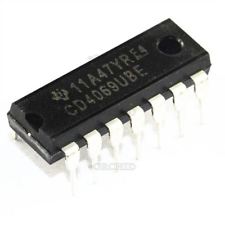 El dispositivo CD4069UB consta de seis circuitos inversores CMOS. Estos dispositivos están diseñados para aplicaciones de inversores de propósito general donde no se requieren las capacidades de control TTL de media potencia ni la conversión de nivel lógico de circuitos como los inversores hexadecimales CD4009 y CD4049 y sus búferes.