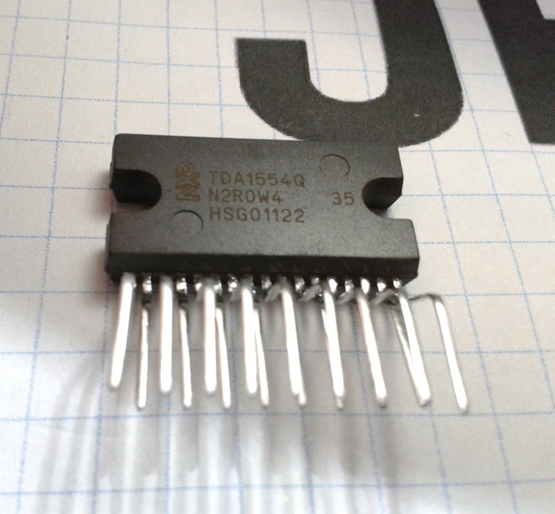 El TDA1554Q es un amplificador de salida de clase B integrado en un paquete de alimentación de plástico de una sola línea (SIL) de 17 derivaciones. El circuito contiene 4 amplificadores de 11 W de un solo extremo o 2 amplificadores de puente de 22 W. El dispositivo está desarrollado principalmente para aplicaciones radio de coche.