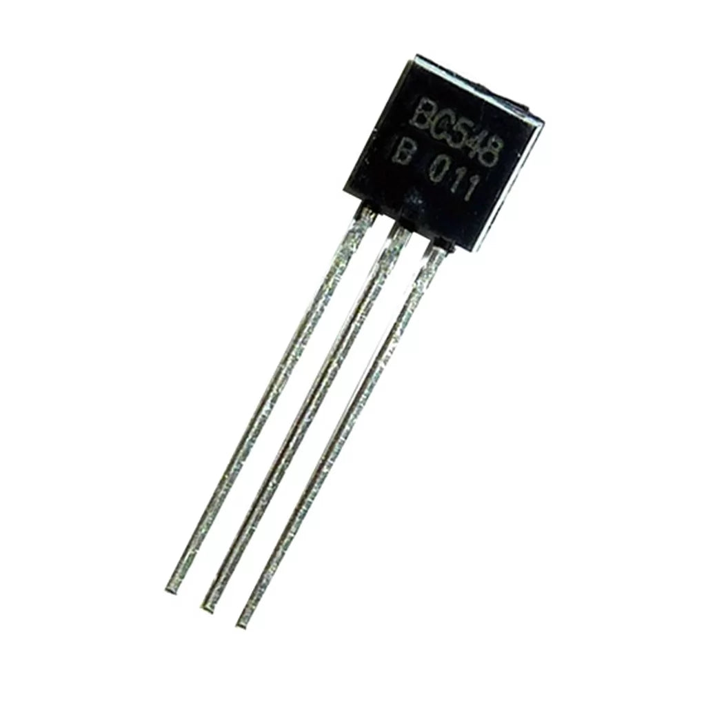 Este es el BC548, un BJT (transistor de unión bipolar) de silicio NPN. Este pequeño transistor puede ayudar en su proyecto al usarse para ayudar a impulsar grandes cargas o amplificar o conmutar aplicaciones. El BC548 está clasificado específicamente a 45V y 100mA máximo.